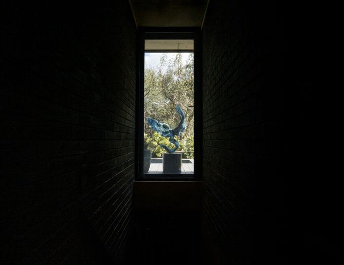 One of NOIRHAUS’s most defining and delightful features is its series of stained glass windows, personally designed by the owners to depict their numerous adventures around the world. These colorful windows scatter playful, kaleidoscopic light throughout the interiors, transforming the serious brutalist spaces into vibrant canvases of dynamic illumination. This infusion of vivid color and personal storytelling through light elevates the home into a living gallery.